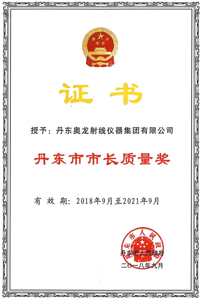 9月3日,市政府召开全市质量大会,丹东奥龙射线仪器集团有限公司、辽宁五一八内燃机配件有限公司被丹东市政府授予2018年市长质量奖。奥龙集团董事长李义彬在会上作交流发言并向全市企业发出争创品牌的倡议。